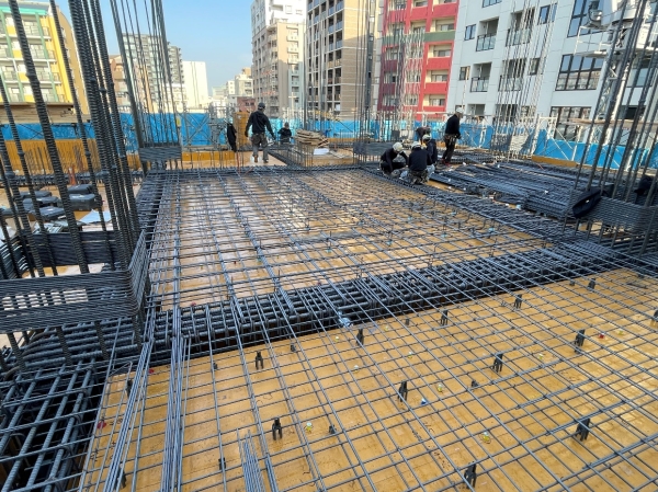 3階躯体(4階床)配筋工事状況です。