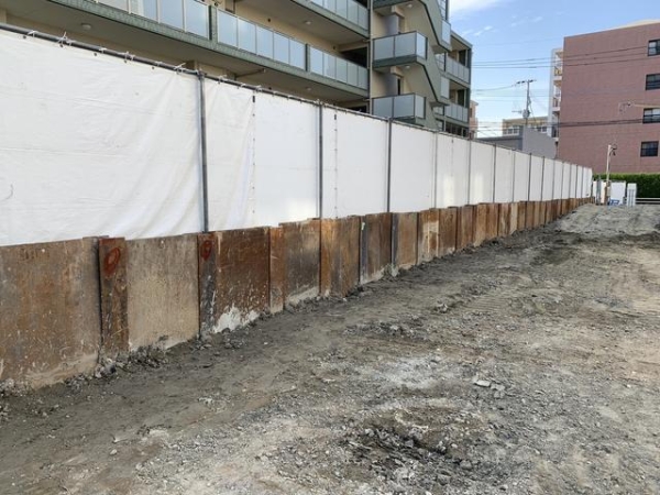 土留め工事(H鋼鉄板連続壁工法)施工状況です。