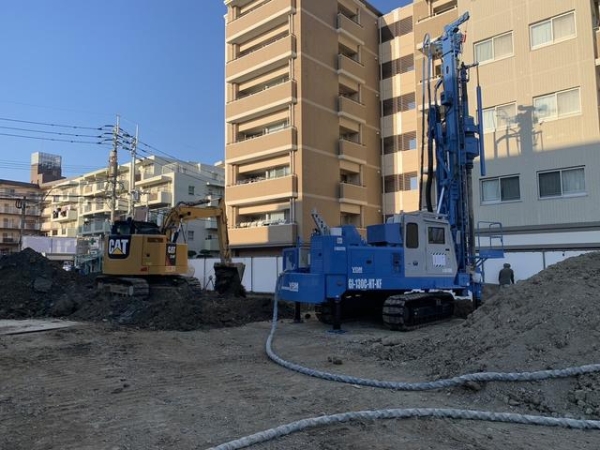基礎下の地盤改良の施工状況です。